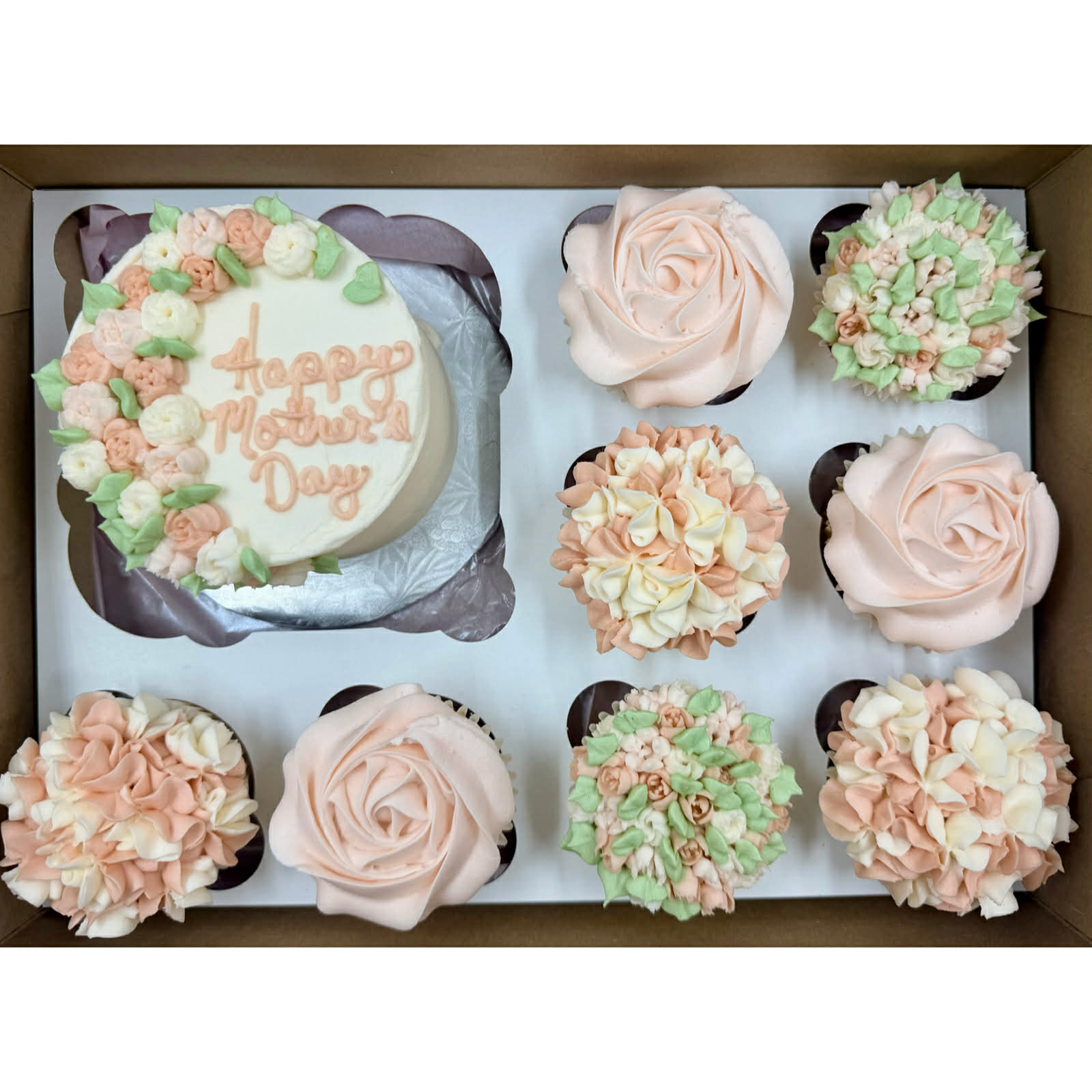 Each box included a small cake and 8 cupcakes like image.