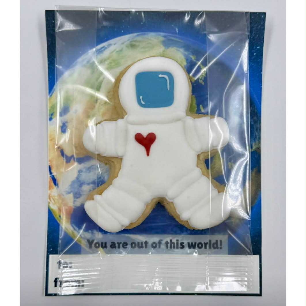 Sugar cookie individually packaged with card.